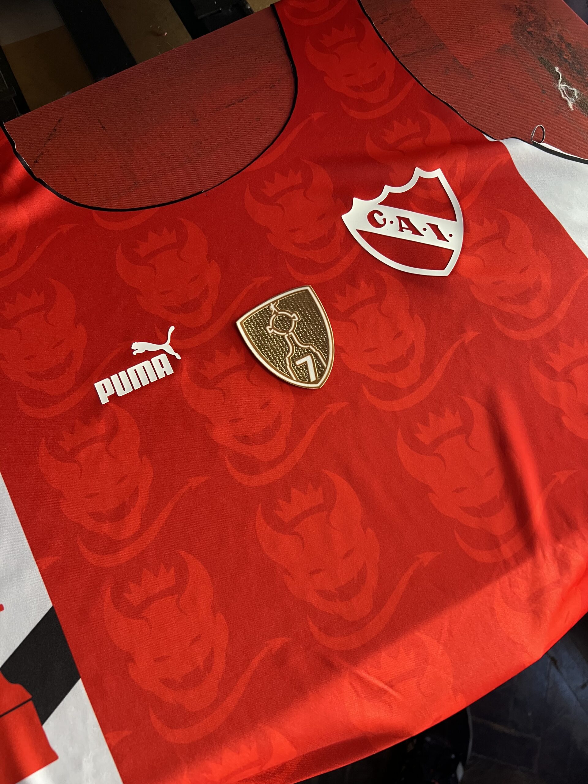 Desarrollamos este diseño conjugando diseños pasados del rojo y con las ideas que trajo el cliente llevamos adelante esta fabulosa musculosa que combina mas de 5 tipos de materiales distintos! conviviendo para dar a luz este pilchón!